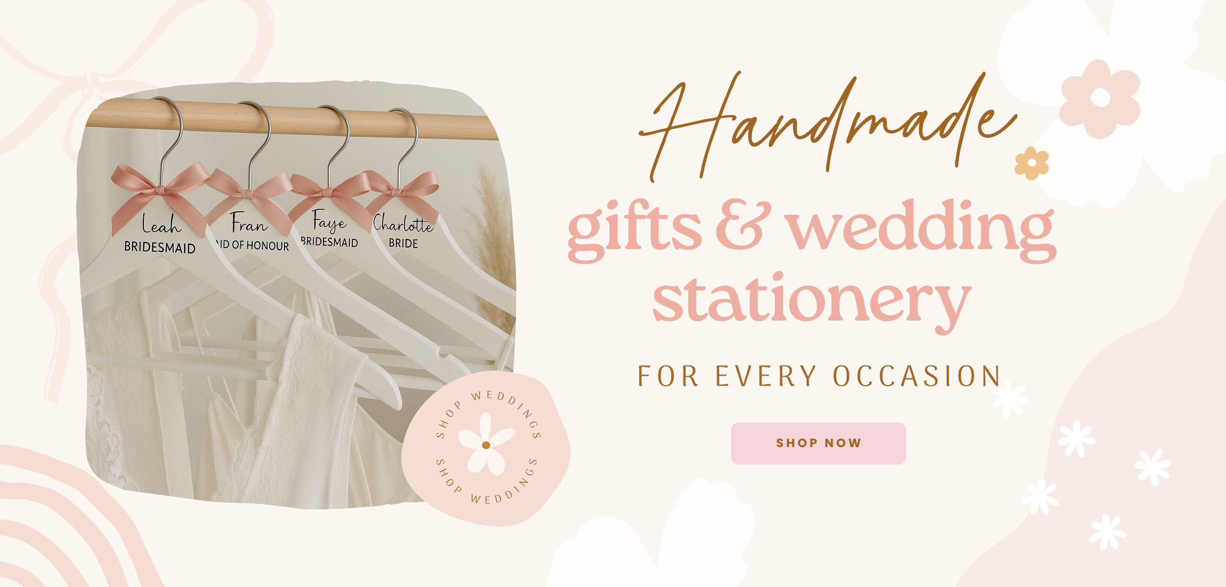 When you choose to buy from a small business like mine, you’re choosing a truly personalised experience. Every item is crafted with care and can be fully customised to match your wedding theme, colours, and unique vision. With over 14 years of experience in the wedding and handmade gifts industry, I bring expertise, passion, and attention to detail to every order.