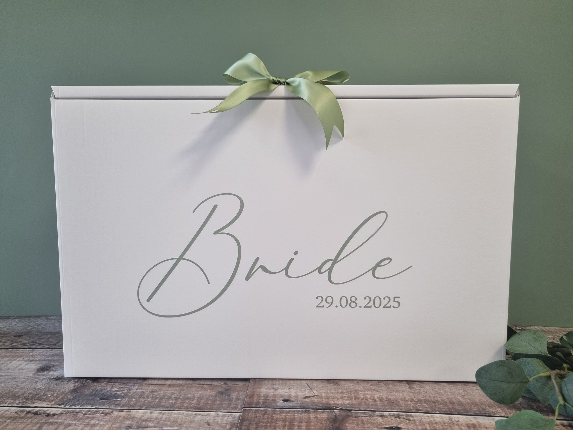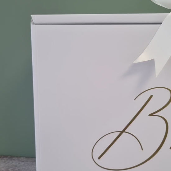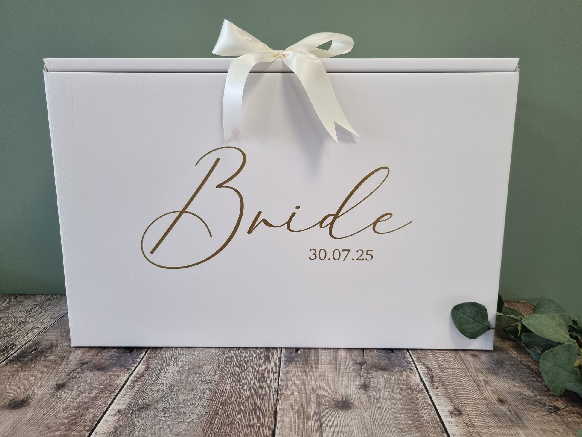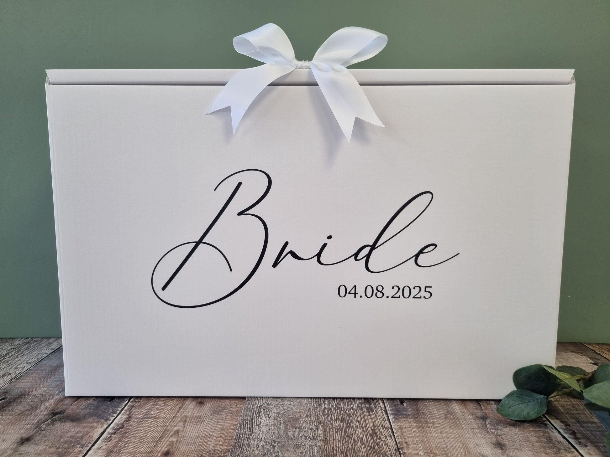 Planning a destination wedding or travelling across the UK for your big day? This elegant wedding dress travel box is the perfect way to transport your bridal gown safely and in style. Designed with a modern minimalist look and sleek thin font personalisation, it’s both practical and beautifully refined.