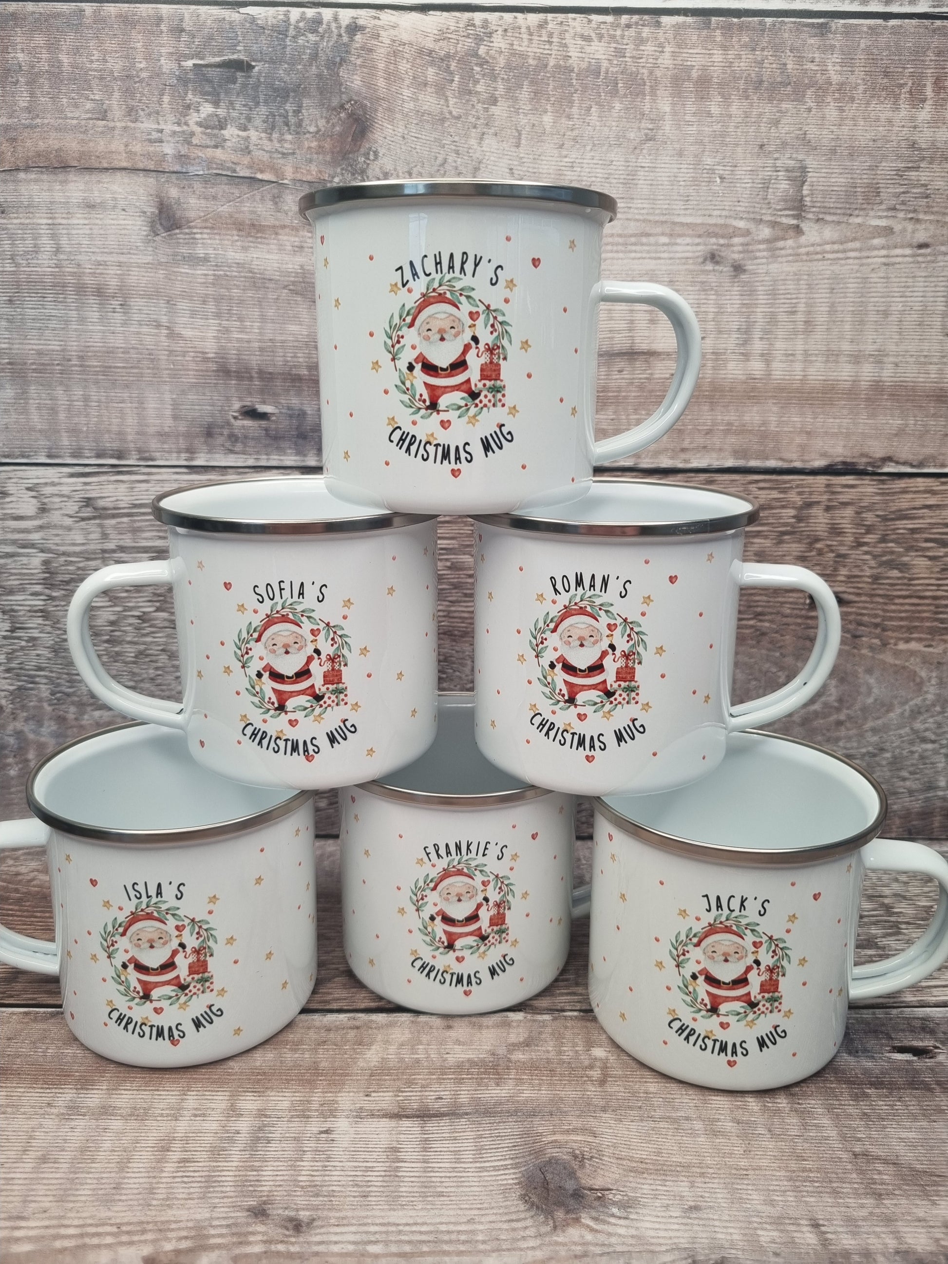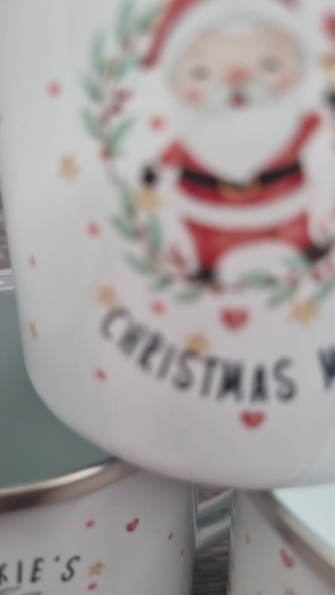 Get in the festive spirit with our Personalised Christmas Mug, perfect for enjoying hot chocolate. Made from durable metal enamel, it's built to last and can be used year after year. Personalise it with a name and make it a thoughtful gift. Hand wash only, 12oz capacity for hot and cold drinks.